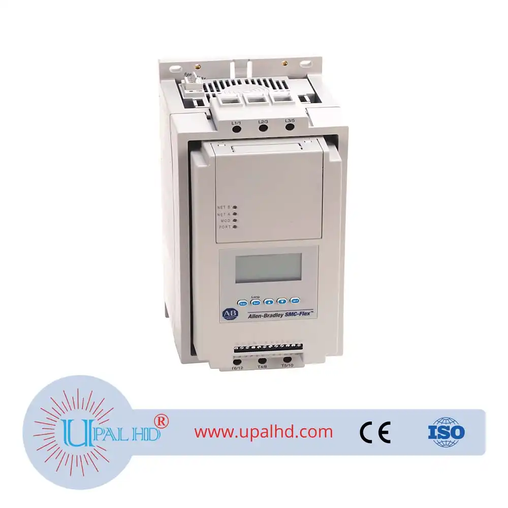150-F201NBR Rockwell AB SMC Flex soft starter current 201A.Soft Start Series Model No: 150-F201NBR.The Allen-Bradley 150-F201NBR is a SMC Flex Smart Motor Controller. This motor controller has a line Voltage of 200-460VAC, 3-Phase, 50 and 60 Hz and control Voltage of 24V AC/DC (5-480 A units)It delivers maximum continuous output current of 201 Amperes and output power of 150 HP at 460VAC rated voltage with an open type enclosure. This motor controller has an integrated LCD backlit display which is used for programming and monitoring of the controller’s operation.