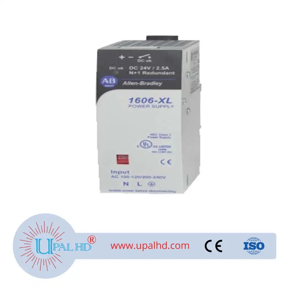 1606-XL60DR brand new American Rockwell AB PLC power supply.1606 Series Model No: 1606-XL60DR.The 1606-XL60DR power supply from Allen-Bradley/Rockwell Automation is designed to operate as a redundant power supply in an industrial machine system. It is part of the Allen-Bradley/Rockwell Automation 1606 series of switched mode power supplies. This redundant power supply module acts as the backup power supply that activates when the system?s main power supply fails for any reason, and it helps to prevent data losses and operating errors. The 1606-XL60DR redundant power supply has 60 Watts of rated output power. This power supply?s output voltage rating is 24 Volts DC and its input voltage ratings are 100 to 120 Volts AC and 200 to 240 Volts AC, and the input voltage ratings are manually selectable.