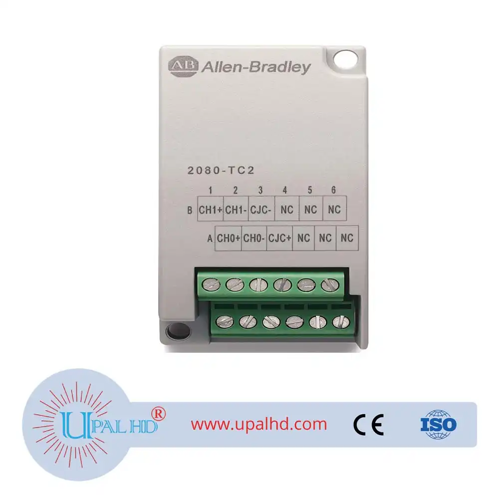 2080-TC2 Rockwell AB Micro800 plug-in module. Micro 800 Series Model No: 2080-TC2. The Allen-Bradley/Rockwell Automation 2080-TC2 module is a Micro 800 series non-isolated thermocouple module. It can be connected to Micro 800 series controllers to give them the power of temperature control. The 2080-TC2 non-isolated thermocouple module is a 2-channel thermocouple module. It has a rated mounting torque of 0.2 N-m. The 2080-TC2 non-isolated thermocouple module operates by digitally converting and transmitting temperature data from as many as 8 types of thermocouple sensors in any arrangement.