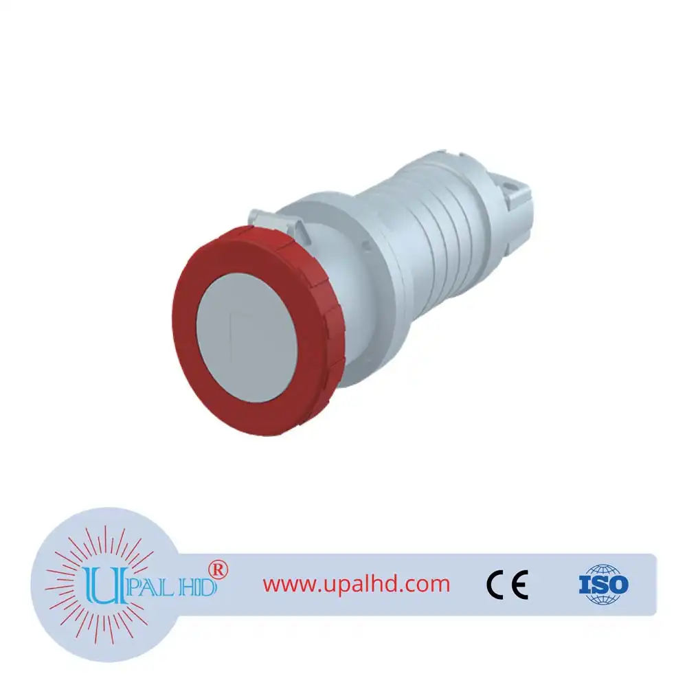 Connector, earthing sleeve position 6h, rated current 125A, IP67 watertight, 3-poles+neutral+earth, frequency 50-60 Hz, color code Red.