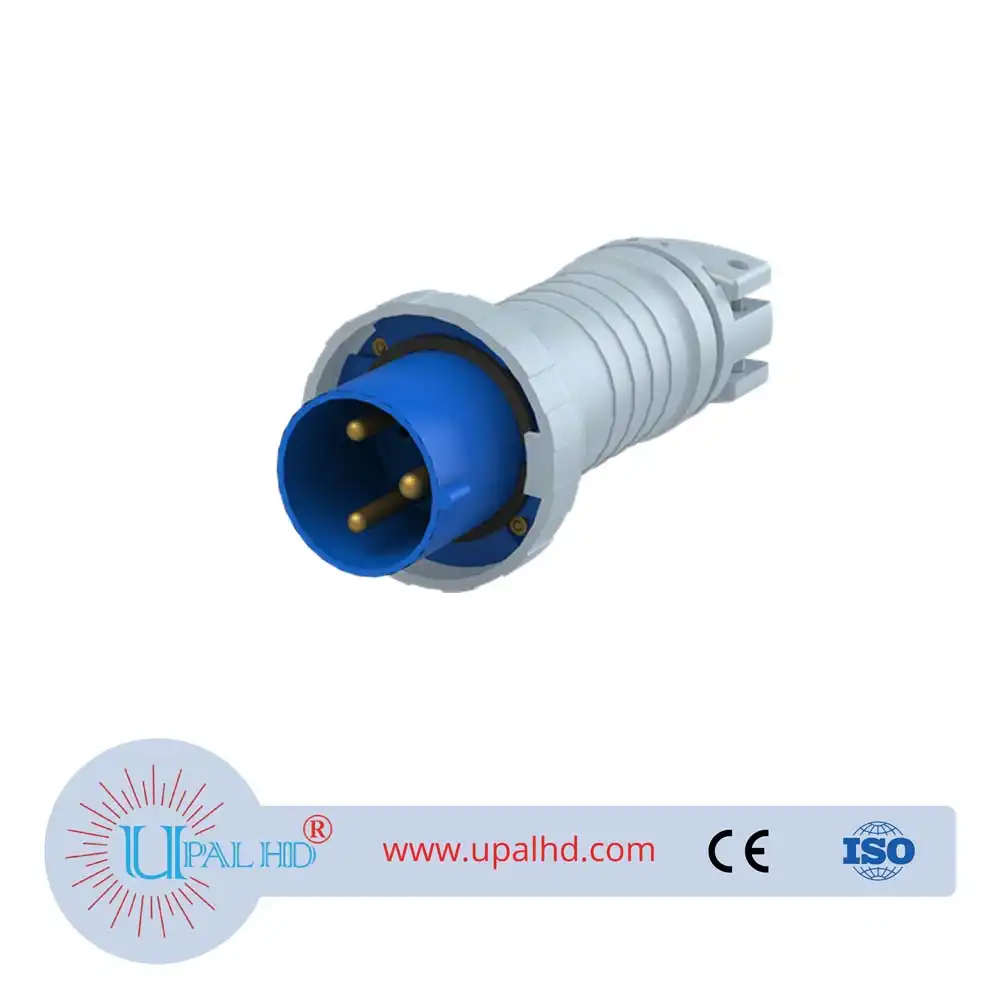 ABB industrial connector 125A three-phase 2125P6W male female plug socket IP67; 10091833.ABB Industrial Connectors Model No: 2125P6W.Plug, earthing sleeve position 6h, rated current 125A, IP67 watertight, 2-poles+earth, frequency 50-60 Hz, color code Blue.