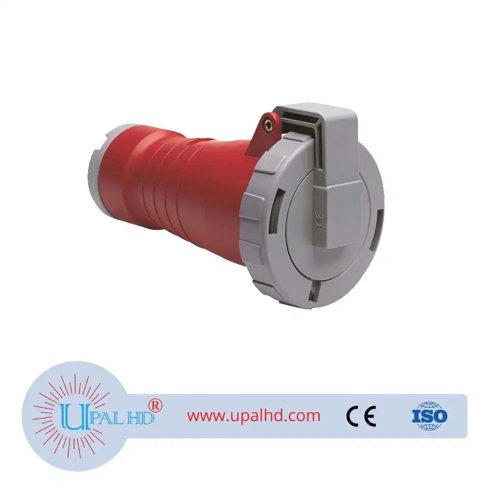 - Connector, earthing sleeve position 6h, rated current 16A, IP67 watertight, 3-poles+earth, frequency 50-60 Hz, color code Red.