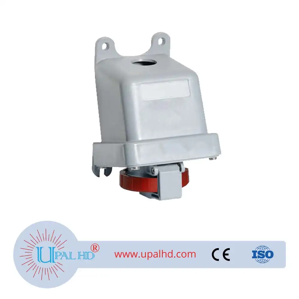 - Surface socket-outlet, earthing sleeve position 6h, rated current 32A, IP67 watertight, 3-poles+neutral+earth, frequency 50-60 Hz, color code Red.