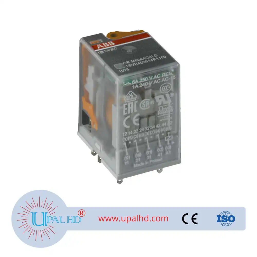 ABB intermediate relay head small general purpose relay CR-M230AC2L; 10050159. CR-M intermediate relay Model No: CR-M230AC2L. The CR-M230AC2L pluggable interface relay is a miniature relay, which is to be plugged into a suitable ABB CR-M socket. Plugged into a socket, the combination of relay and socket may be seemlessly snap-on mounted onto a DIN Rail.This relay operates with a 230 V AC rated control supply voltage and has a 2 c/o (SPDT) output with contacts rated at 250 V / 12 A, enabling the possibility of switching multiple circuits with a single input signal. The relay has an integrated test button which is used for the manual actuation of the relay by locking it’s output contacts. The test button facilitates easy testing and commissioning. The relay also has an integrated LED, which provides the visual indication of the energization of the relay coil. Standard sockets, logic sockets, pluggable function modules, holders and markers are available as accessories. Standard sockets, logical sockets, pluggable function modules, holder and marker are available as accessories.