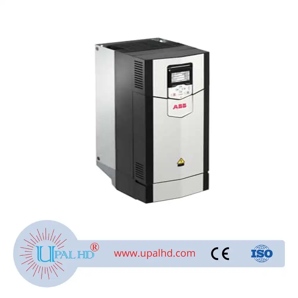 ABB inverter light load 30 KW heavy load 22 KW ACS880-01-052A-5. Inverter Model No: ACS880-01-052A-5. The ACS880-01 drives are customized to meet the particular needs of specific industries, such as oil and gas, mining, metals, chemicals, cement, power plants, material handling, pulp and paper, sawmills, marine, water and wastewater, food and beverage, and automotive. They can control a wide range of applications, including cranes, extruders, winches, winders, conveyors, mixers, compressors, centrifuges, test benches, elevators, extruders, pumps and fans. The ACS880-01 comes in one compact package for easy installation and commissioning. The drive can be installed on the wall as standard and in a cabinet as an option. The drive offering includes enclosure classes up to IP55, making it suitable for most environments and installations. ACS880-01 drives have all the essential features built-in. These features include as standard a choke for harmonic filtering as well as options like a brake chopper, EMC filter and communication protocol adapter, functional safety, external output filters and I/O extension modules.
