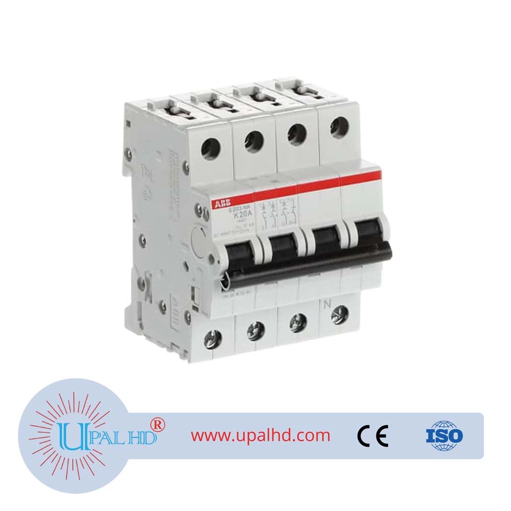 ABB miniature air switch American standard UL circuit breaker protection 20A/S203-K20 NA; 10115650 Miniature circuit breakers and terminal distribution protection products Model Number: S203-K20NA System pro M compact S200 miniature circuit breakers are current limiting. They have two different tripping mechanisms, the delayed thermal tripping mechanism for overload protection and the electromechanic tripping mechanism for short circuit protection. They are available in different characteristics (B,C,D,K,Z), configurations (1P,1P+N,2P,3P,3P+N,4P), breaking capacities (up to 6 kA at 230/400 V AC) and rated currents (up to 63A). All MCBs of the product range S200 comply with IEC/EN 60898-1, IEC/EN 60947-2, UL1077 allowing the use for residential, commercial and industrial applications. Bottom-fitting auxiliary contact can be mounted on S200 to save 50% space.