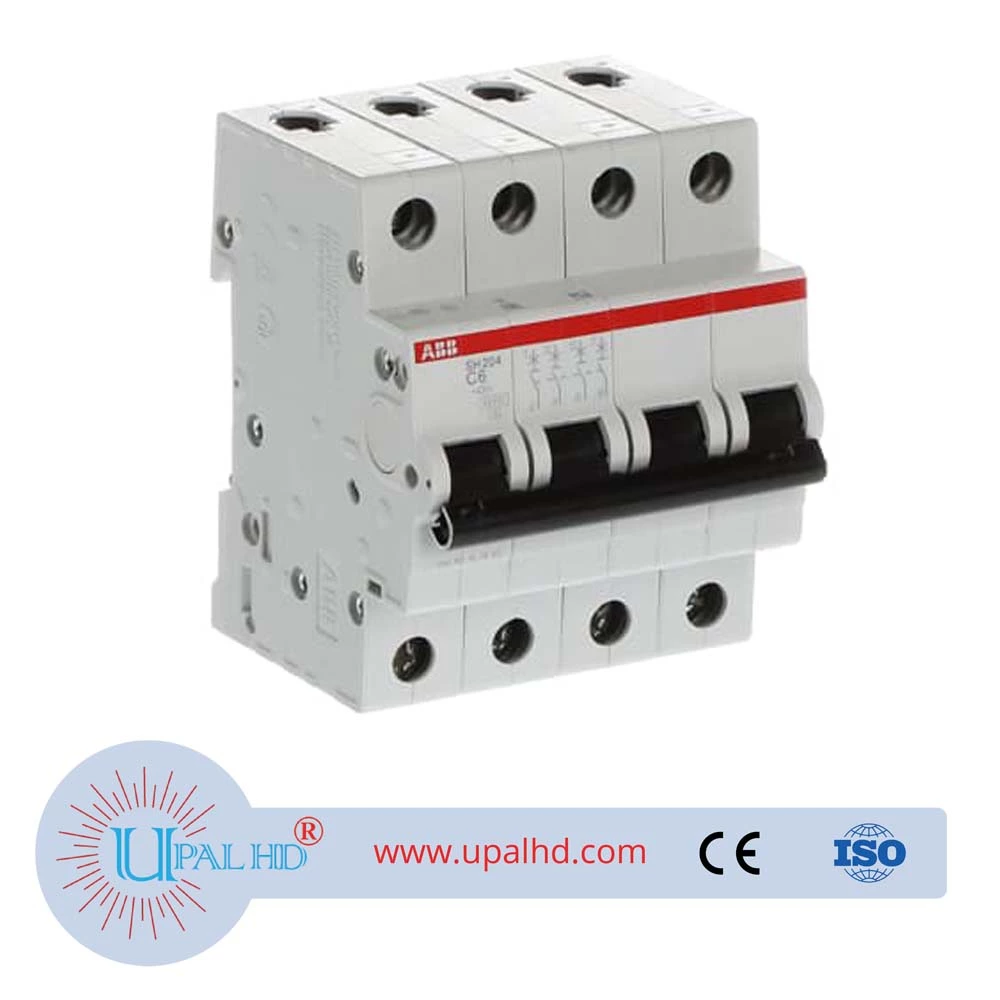 ABB miniature circuit breaker 380V three-phase four-wire air switch open micro-break SH204-C6; 10104019 Miniature circuit breakers and terminal distribution protection products Model Number: SH204-C6 Compact Home SH200 miniature circuit breakers are current limiting. They have two different tripping mechanisms, the delayed thermal tripping mechanism for overload protection and the electromechanic tripping mechanism for short circuit protection. They are available in different characteristics (B,C),