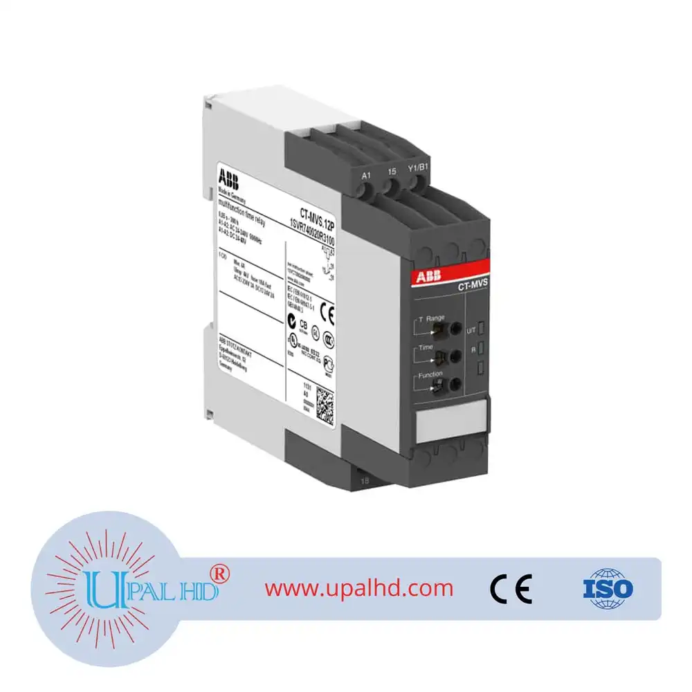 ABB official genuine electronic time relay monitor CT-MVS.12S,24-48VDC. CT Time Relay Model No: CT-MVS.12S. The CT-MVS.12S is a multifunction electronic time relay from the CT-S timer range. It provides 10 timing functions with 10 time ranges from 0.05 s to 300 h. This time relay operates with a rated control supply voltage of 24 – 48 V DC / 24 – 240 V AC and has a 1 c/o (SPDT) output rated at 250 V / 4 A. A control input works with voltage-related (non-floating) triggering. A sealable transparent cover for protection against unauthorized changes is available as accessory. The device offers screw connection technology with double-chamber cage connection terminals.