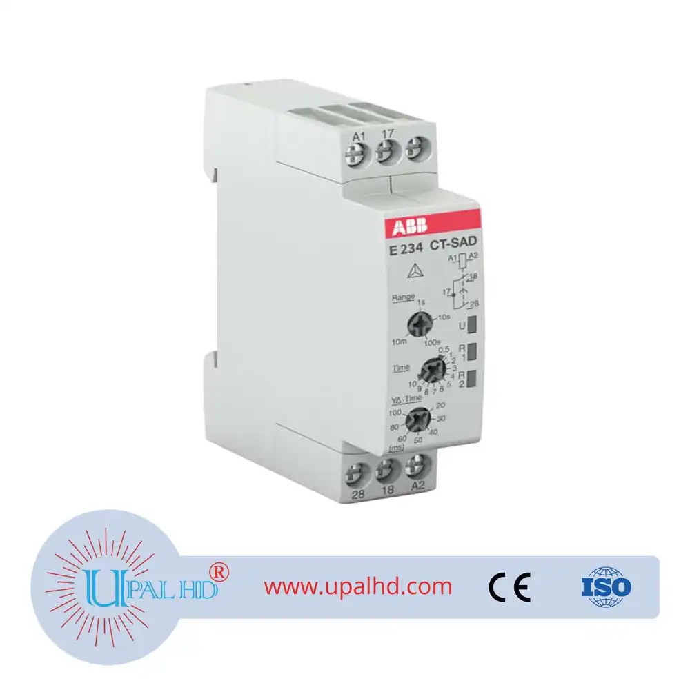 ABB official genuine electronic time relay monitor CT-SAD.22,, 24-240VAC. CT Time Relay Model No: CT-SAD.22. The CT-SAD.22 is a single-function electronic time relay from the CT-D timer range. It provides a star-delta function with 4 time ranges from 0.05 s to 10 min. and a transition time adjustable from 20 ms to 50 ms. This time relay operates with a rated control supply voltage of 24 – 48 V DC / 24 – 240 V AC and has a 2 n/o output with contacts rated at 250 V / 5 A. ABB official genuine electronic time relay monitor