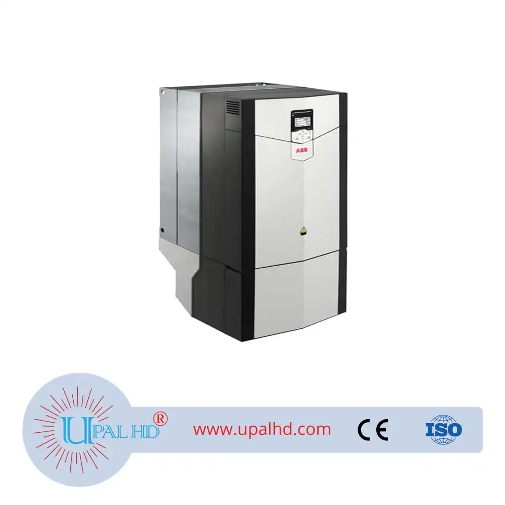 ABB single transmission frequency conversion light load 250KW heavy load 200KW ACS880-01-414A-5. Inverter Model No: ACS880-01-414A-5. The ACS880-01 drives are customized to meet the particular needs of specific industries, such as oil and gas, mining, metals, chemicals, cement, power plants, material handling, pulp and paper, sawmills, marine, water and wastewater, food and beverage, and automotive. They can control a wide range of applications, including cranes, extruders, winches, winders, conveyors, mixers, compressors, centrifuges, test benches, elevators, extruders, pumps and fans. The ACS880-01 comes in one compact package for easy installation and commissioning. The drive can be installed on the wall as standard and in a cabinet as an option. The drive offering includes enclosure classes up to IP55, making it suitable for most environments and installations. ACS880-01 drives have all the essential features built-in. These features include as standard a choke for harmonic filtering as well as options like a brake chopper, EMC filter and communication protocol adapter, functional safety, external output filters and I/O extension modules.