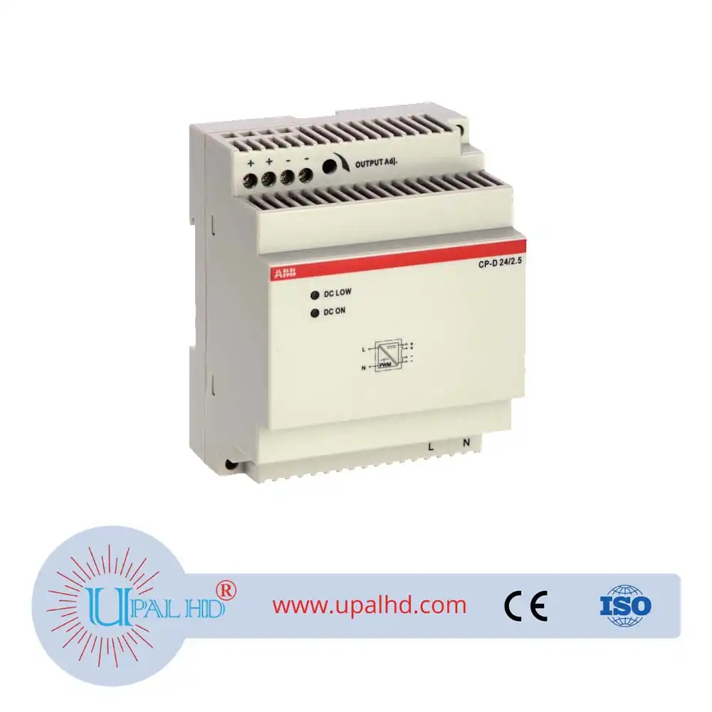 ABB switch voltage CP-D series CP-D 24/2.5; 10141010. CP Switching Power Supply Model No: CP-D 24/2.5. The CP-D 24/2.5 is a power supply from the CP-D range. The primary switch mode power supply offers a wide range input of 90-264 V AC and 120-375 V DC, rated input voltage is 100-240 V AC. The rated output power is 60 W, rated output current is 2.5 A at an output voltage of 24 V DC. The output voltage is adjustable within a range of 24 to 28 V DC. The power supply provides a U/I output characteristic. ABB switch voltage CP-D series