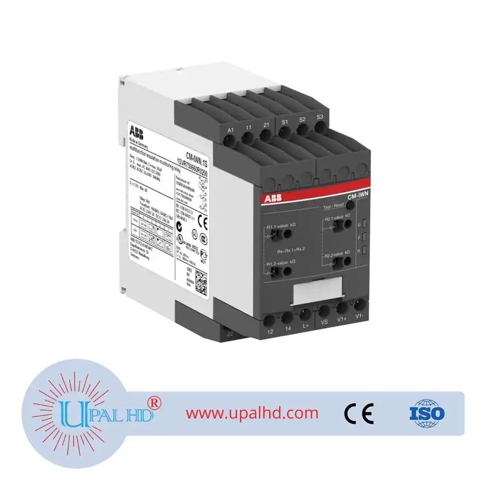 ABB ungrounded system insulation monitor CM-IWN.1S/10108134. CM Monitoring Relay Model No: CM-IWN.1S. The CM-IWN.1S serves to monitor insulation resistance in accordance with IEC 61557-8 in unearthed IT AC systems, IT AC systems with galvanically connected DC circuits, or unearthed IT DC systems with a voltage up to 400 V AC and 600 V DC. The measuring range can be extended up to 690 V AC and 1000 V DC by using the coupling unit CM-IVN. It can be configured to the requirements of the applications and therefore used multi-functional. ABB ungrounded system insulation monitor