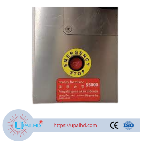 Some escalators have direction arrows on the ends of the balustrade. Escalators’ on/off buttons are frequently located at the ends of the balustrade. Moving walkways often use balustrades in the same way.