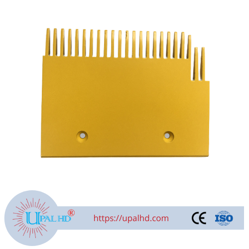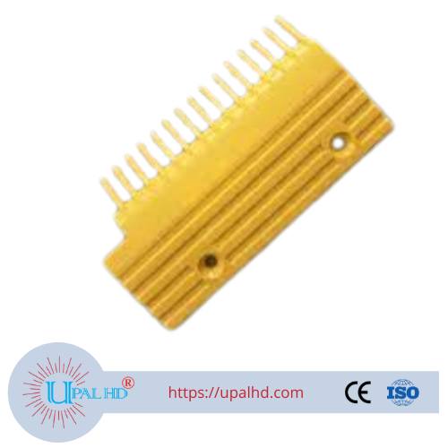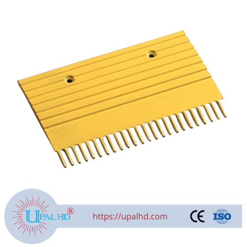 so named for the cleats on its edge which mesh with the matching cleats on each step (and resemble a comb). The interlocking cleats help to minimize the gap between the stairs and landing, preventing objects or persons from becoming caught in it.
