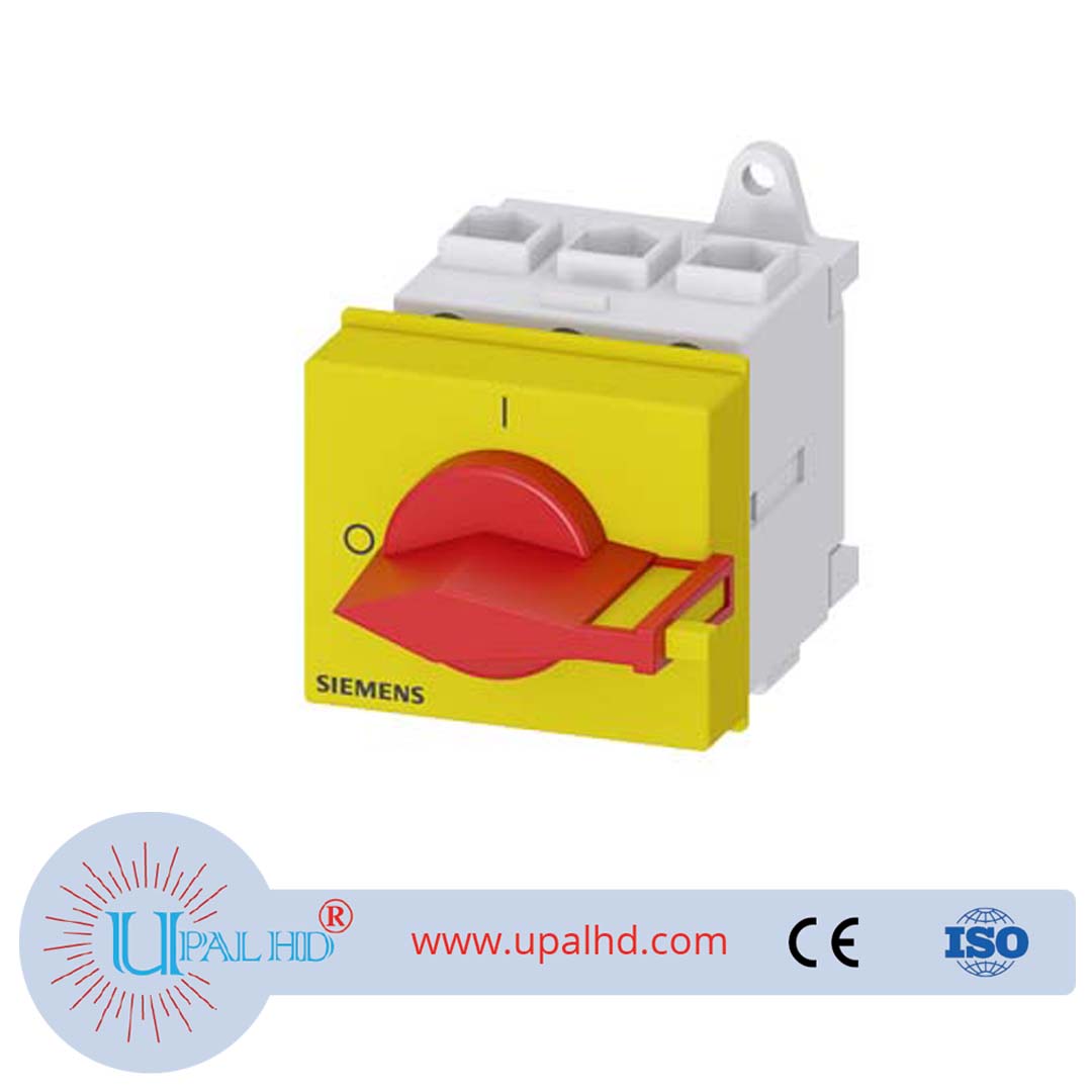 SENTRON, switch disconnector 3LD, emergency off switch, 3-pin, Iu: 25 A, rated power/A C 9.5 kW at 400V at 23 A, distribution panel mount, knob operator, red/yellow, handle Low voltage power Model Number: 3LD2130-0TK13 SENTRON, Switch disconnector 3LD, emergency switching-off switch, 3- pole, Iu: 25 A, operating power / at AC-23 A 400 V: 9.5 kW, installation in distribution boards, knob-operated mechanism, Red / yellow, handle direct at the switch